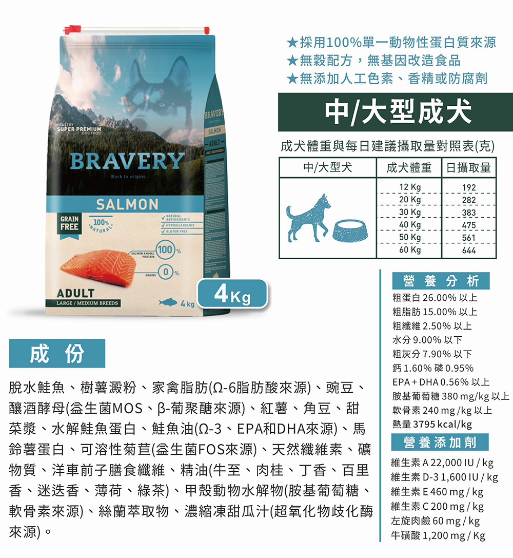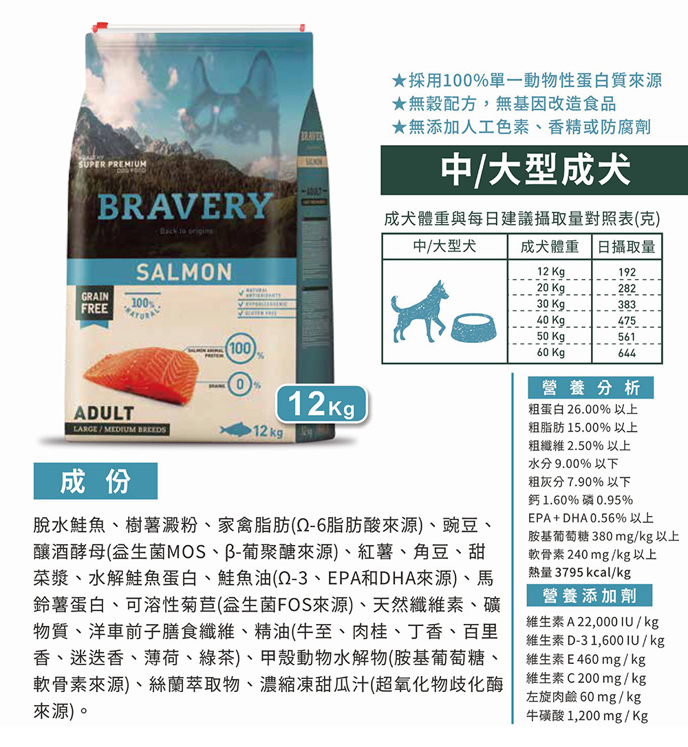 【西班牙 Bravery】總代理-焙菲力 健康食糧 (大型成犬) 鮭魚