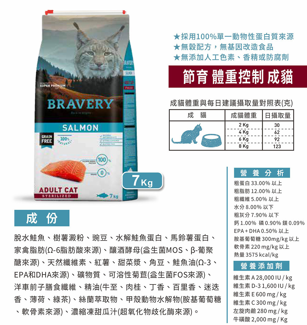 【西班牙 Bravery】總代理-焙菲力 健康食糧 (節育成貓) 鮭魚