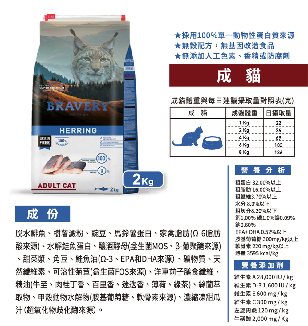 【西班牙 Bravery】總代理-焙菲力 健康食糧 (節育成貓)-(鯡)魚