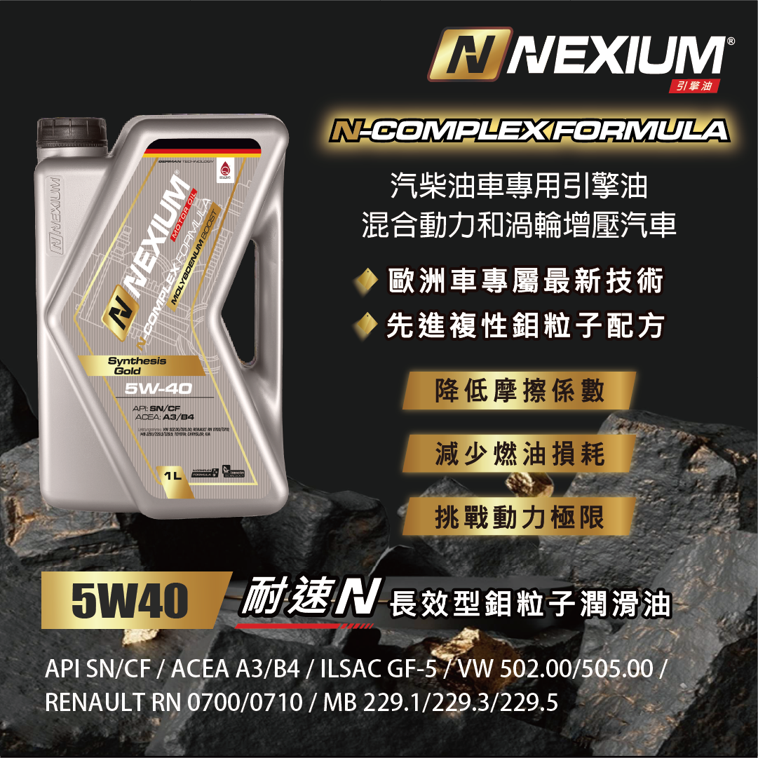 耐速N NEXIUM 長效型鉬粒子潤滑油 N-Complex Formula 5W40