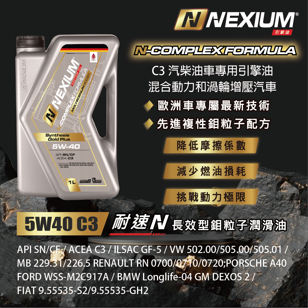 耐速N NEXIUM 長效型鉬粒子潤滑油 N-Complex Formula 5W40 C3