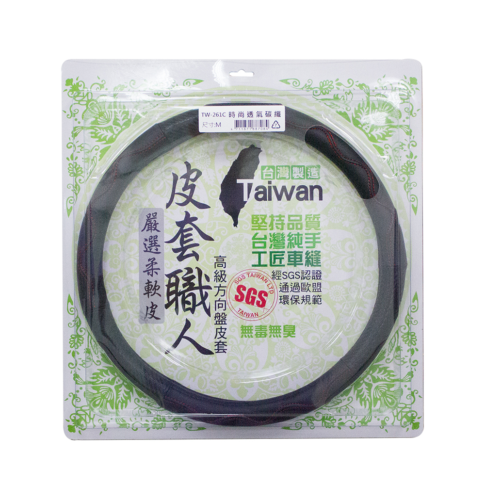 【TW-261C】時尚透氣碳纖 方向盤套 方向盤保護套 防滑 尺寸:S/M/L 台灣製造