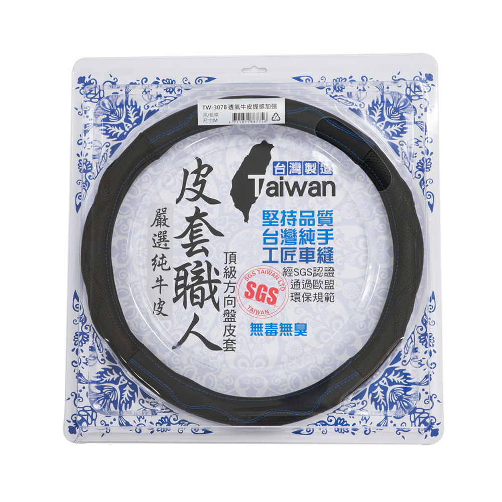 品名:【TW-307B】握感加強透氣牛皮(藍線)