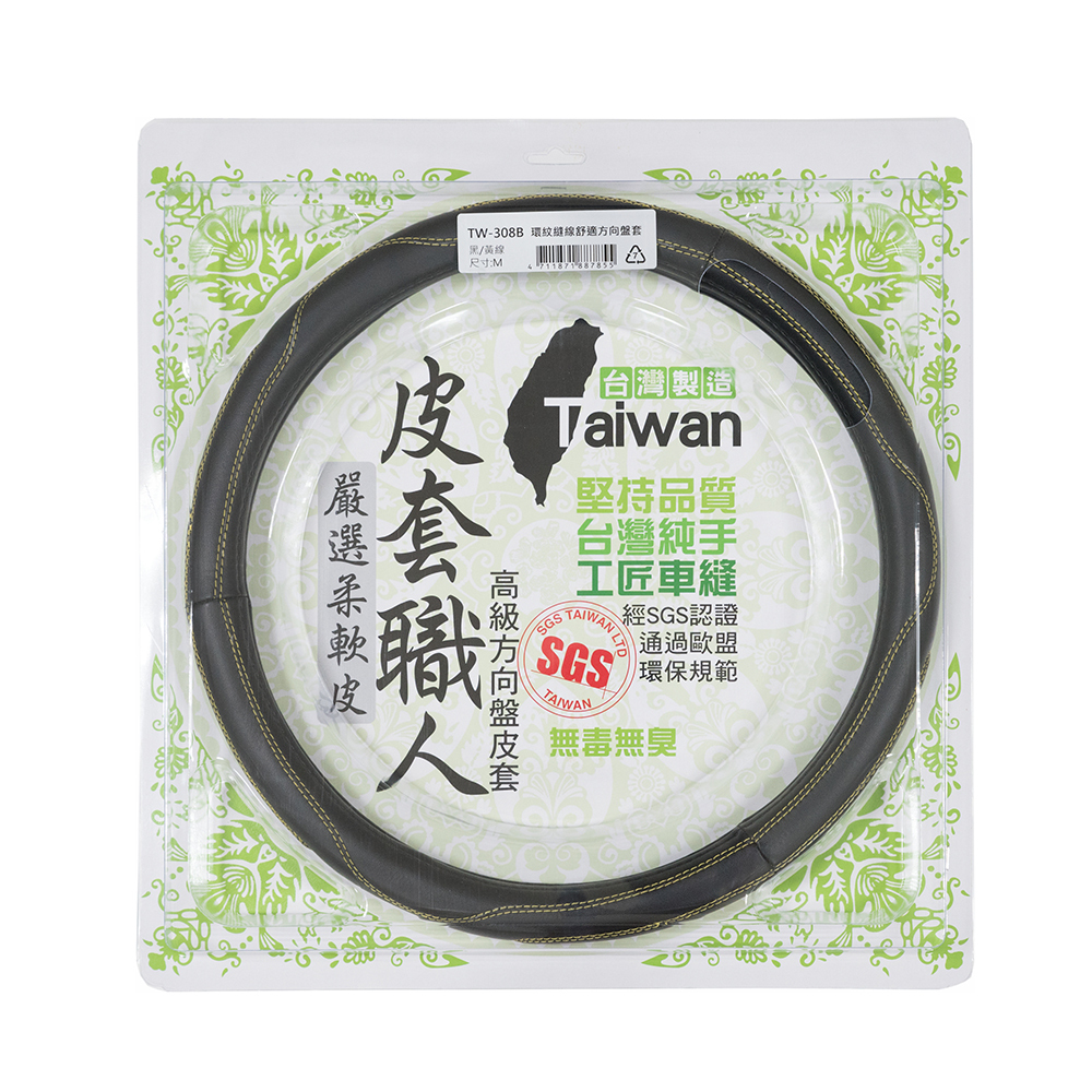 品名:【TW-308Y】環紋縫線舒適方向盤套(黃線)