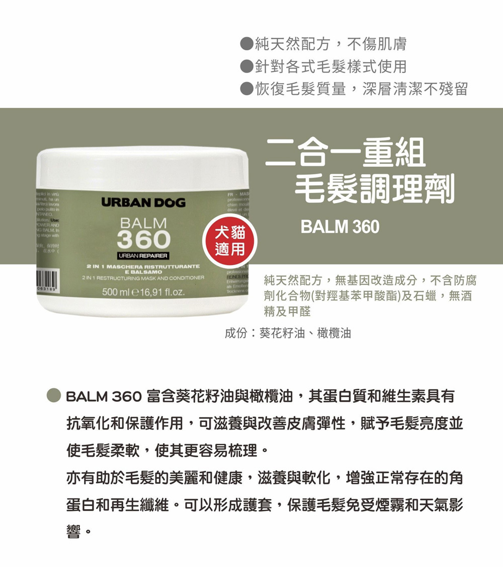 【義大利 Urban Dog】總代理-2合1重組毛髮調理劑 BALM 360 500ml