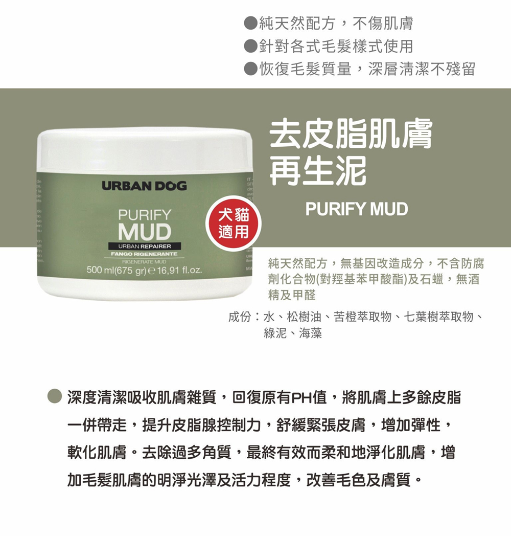 【義大利 Urban Dog】總代理-去皮脂肌膚再生泥 PURIFY MUD 500ml