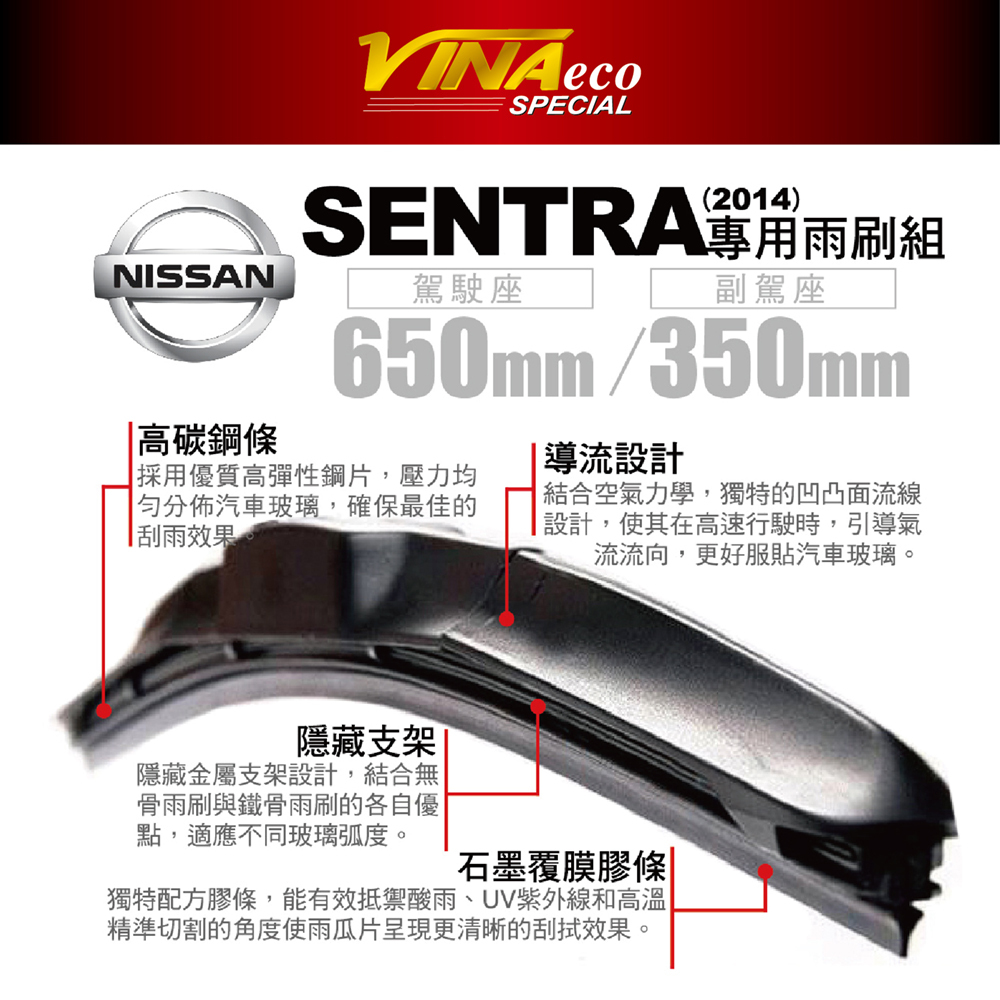 【VINA】VA-9529 Sentra專用雨刷14年後26+14 三角端設計