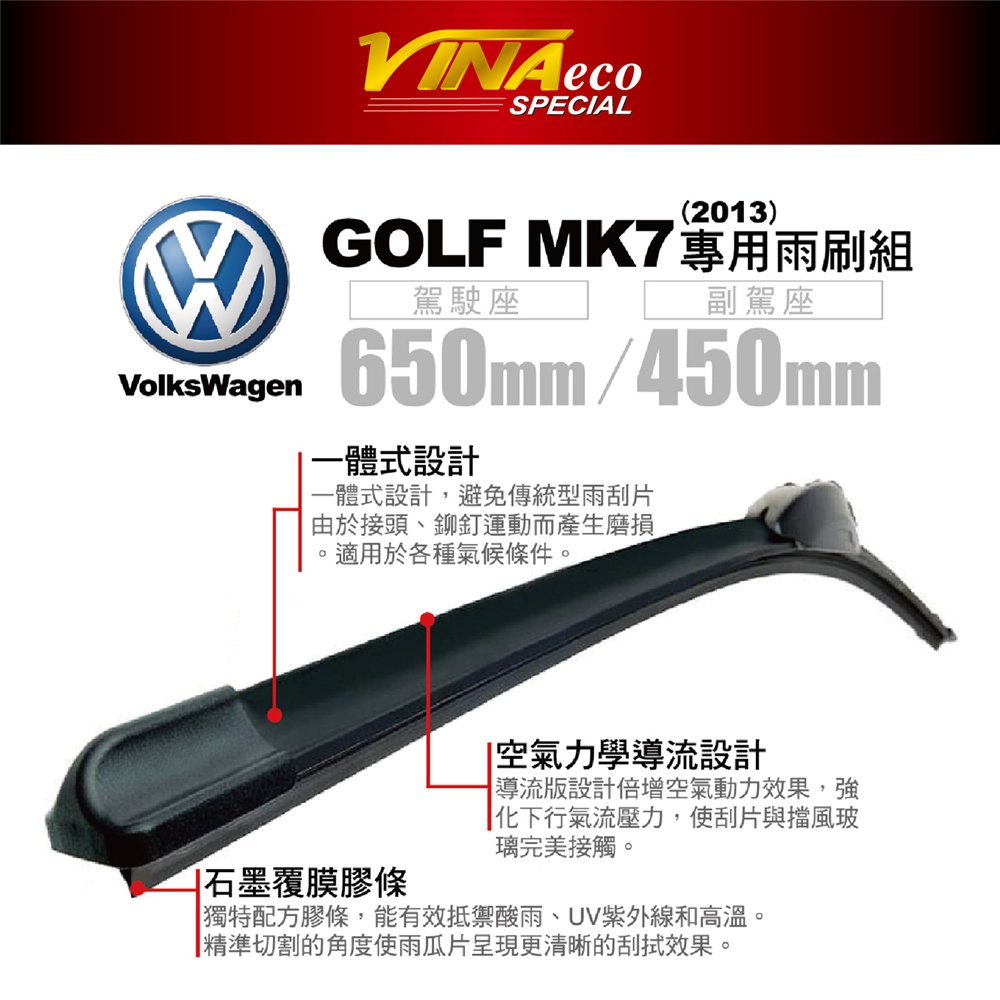 【VINA】VA-9553 GOLF MK7 專用雨刷13年26+18 三角端設計
