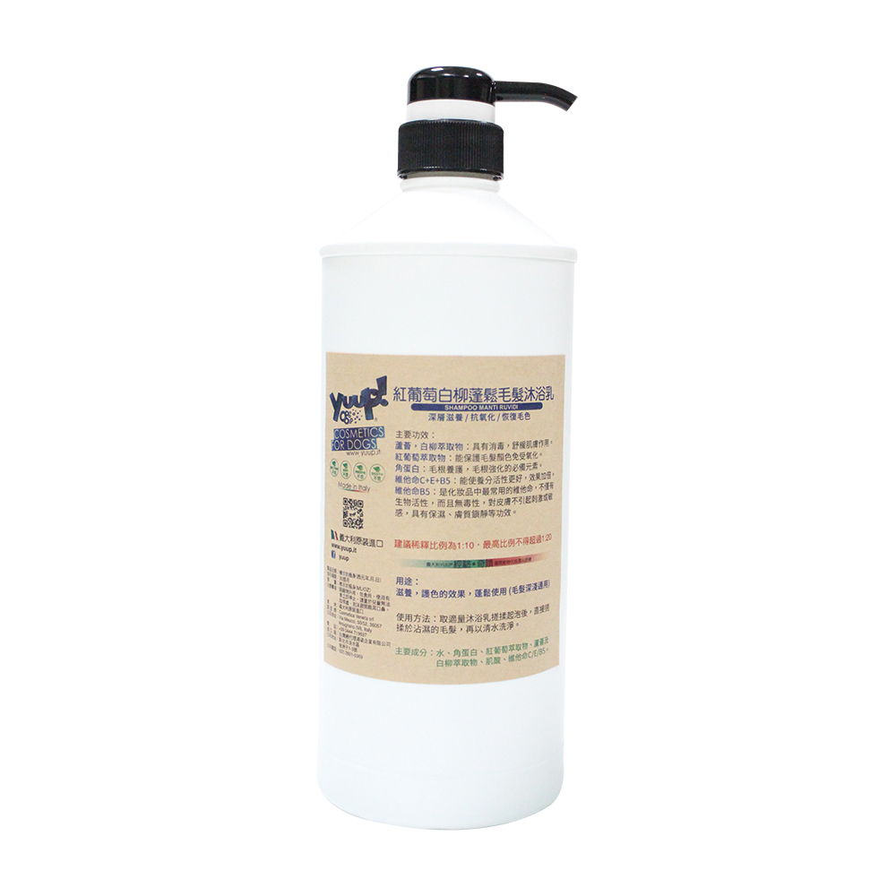 【義大利 Yuup】總代理-優瀑 紅葡萄白柳蓬鬆毛髮沐浴乳 1L(專業分裝瓶))/5L 犬貓適用