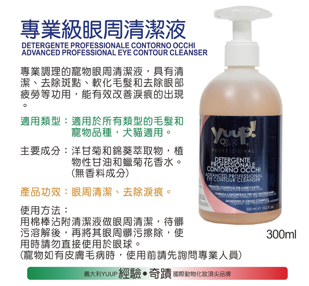【義大利 Yuup】總代理-優瀑 專業級眼周清潔液 300ml 犬貓適用