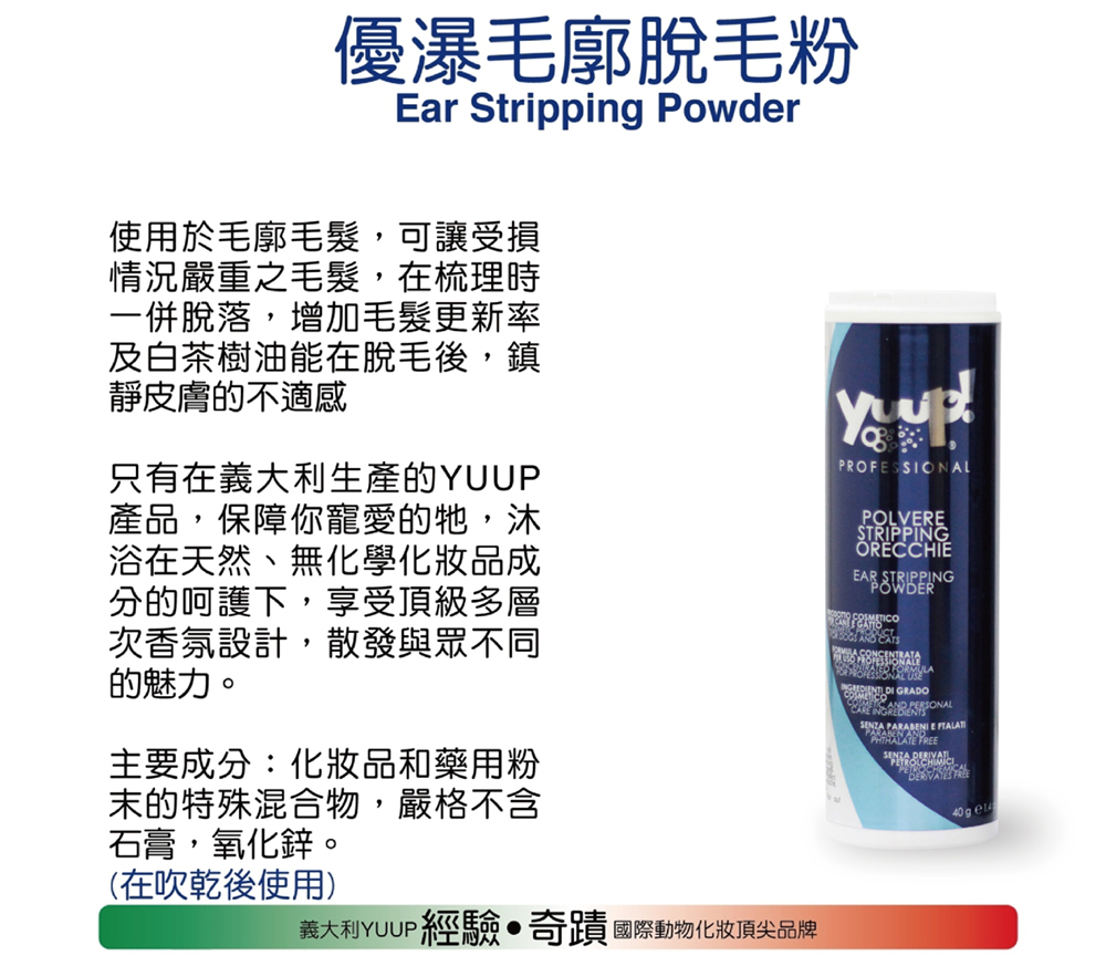 【義大利 Yuup】總代理-優瀑 毛廓脫毛粉 40g 犬貓適用