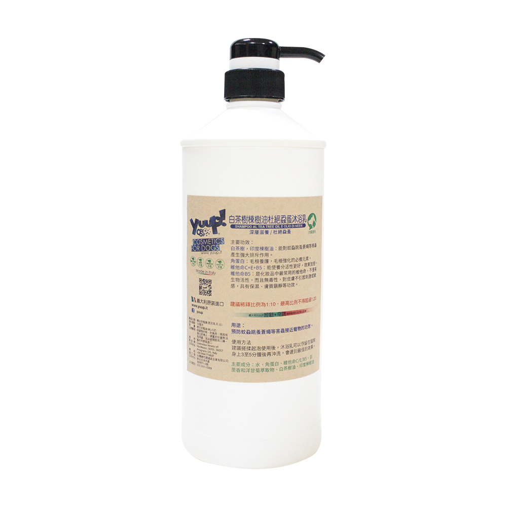 【義大利Yuup】總代理-優瀑白茶樹楝樹油杜絕蝨蚤沐浴乳1L(專業用分裝瓶)/5L 犬貓適用