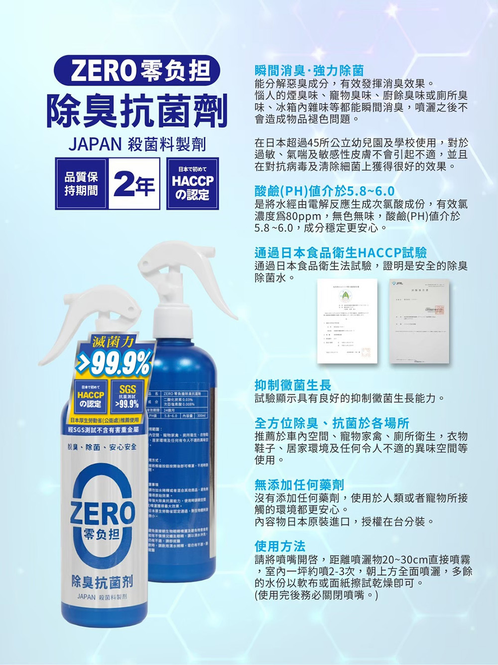 【日本ZERO】零負擔除臭抗菌劑 300ml