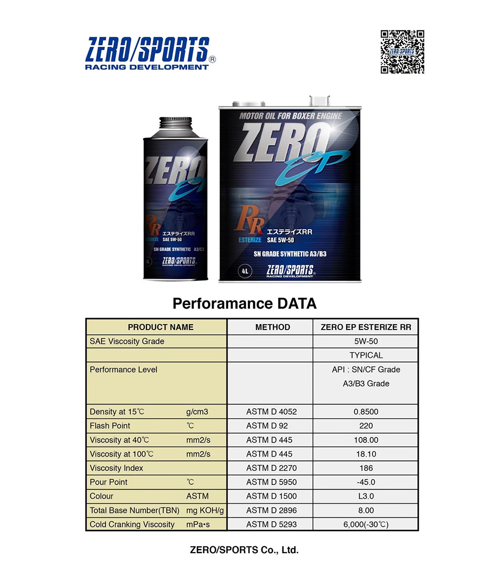日本Zero/Sports(ESTER)酯類配方,超強油膜保護層,徹底包覆引擎每個機件,使引擎在高溫、高作環境中表現更好。獨特的酯類配方有效增件運轉速度,讓愛車性能提升,能在長時間提供更有力的拉轉加速,適合高溫引擎及劇烈超駕用!