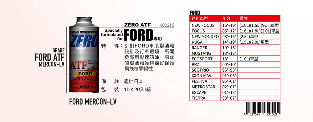 ZERO/SPORTS 福特車系長效變速箱專用油