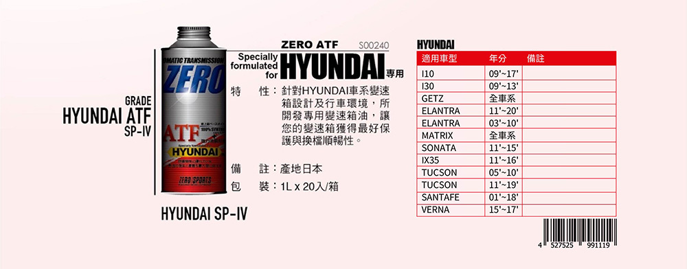 ZERO/SPORTS 現代車系長效變速箱專用油