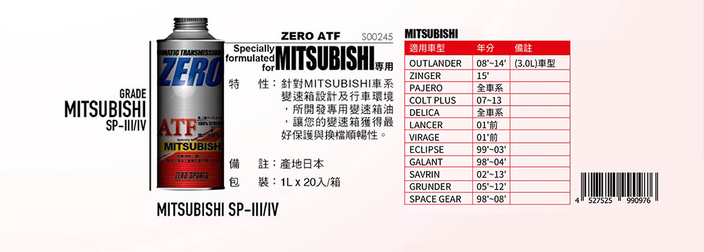 ZERO/SPORTS 三菱車系長效變速箱專用油