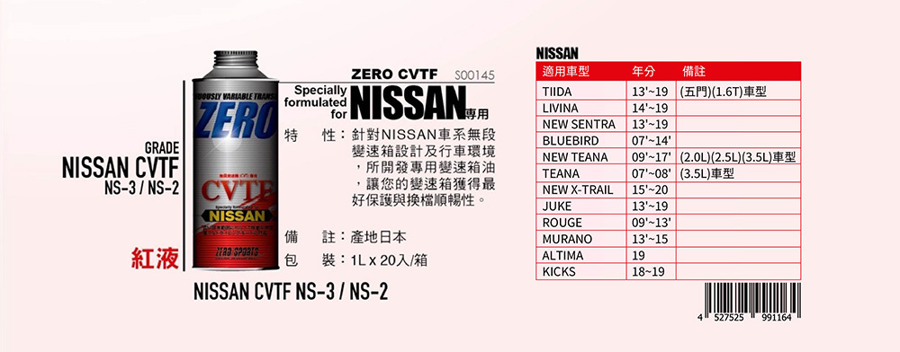ZERO/SPORTS 日產車系無段變速箱專用油