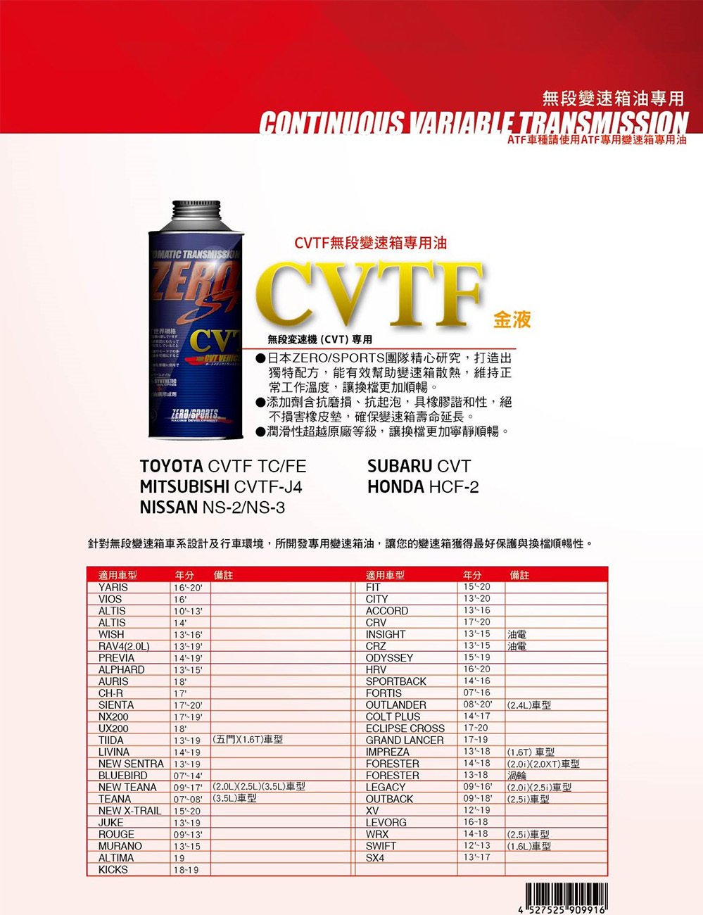 【日本ZERO/SPORTS】總代理-SP系列CVTF無段變速箱專用油(金液) /箱購數量為20瓶