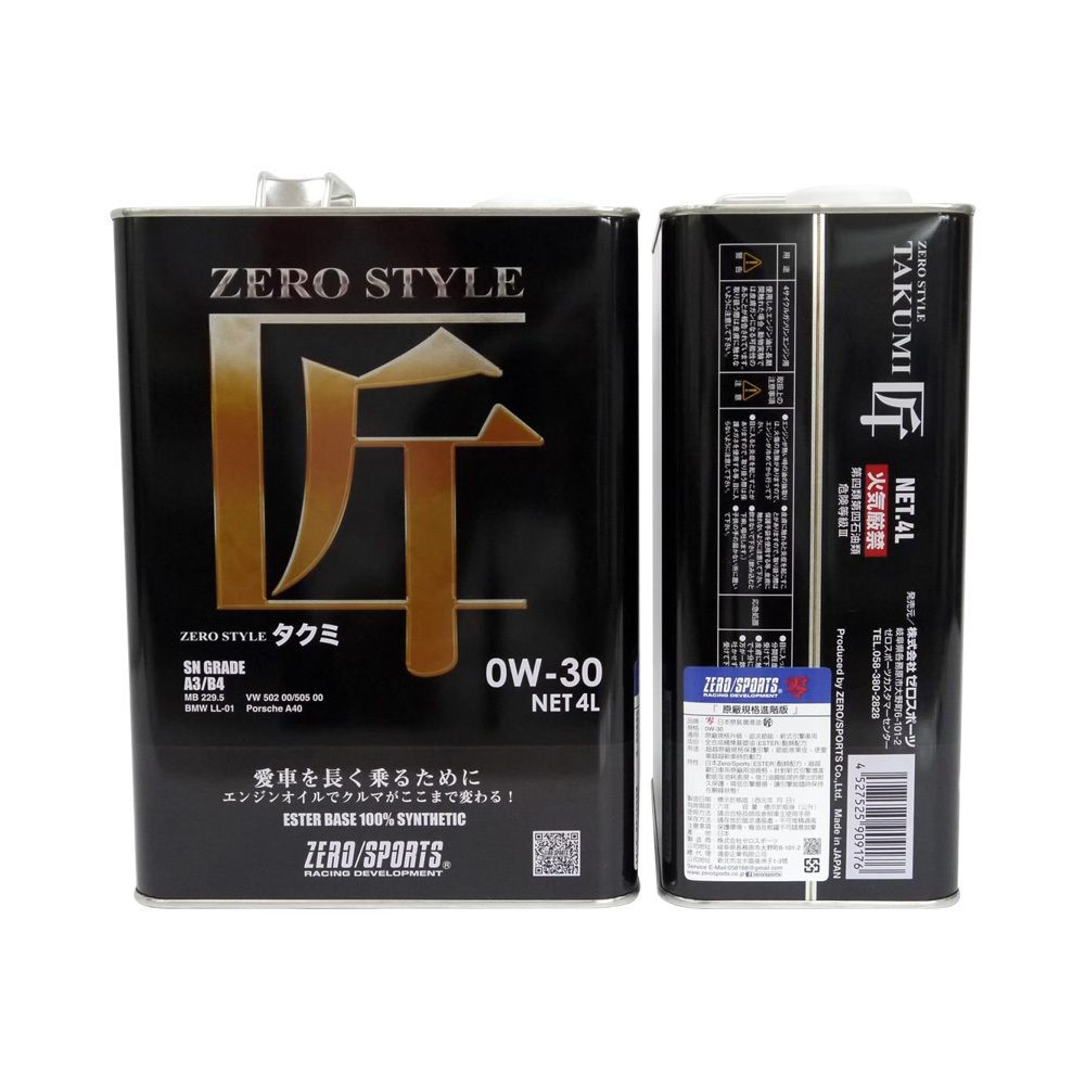【日本ZERO/SPORTS】總代理-匠系列0W30酯類合成機油(原廠規格進階版) /箱購數量為24瓶