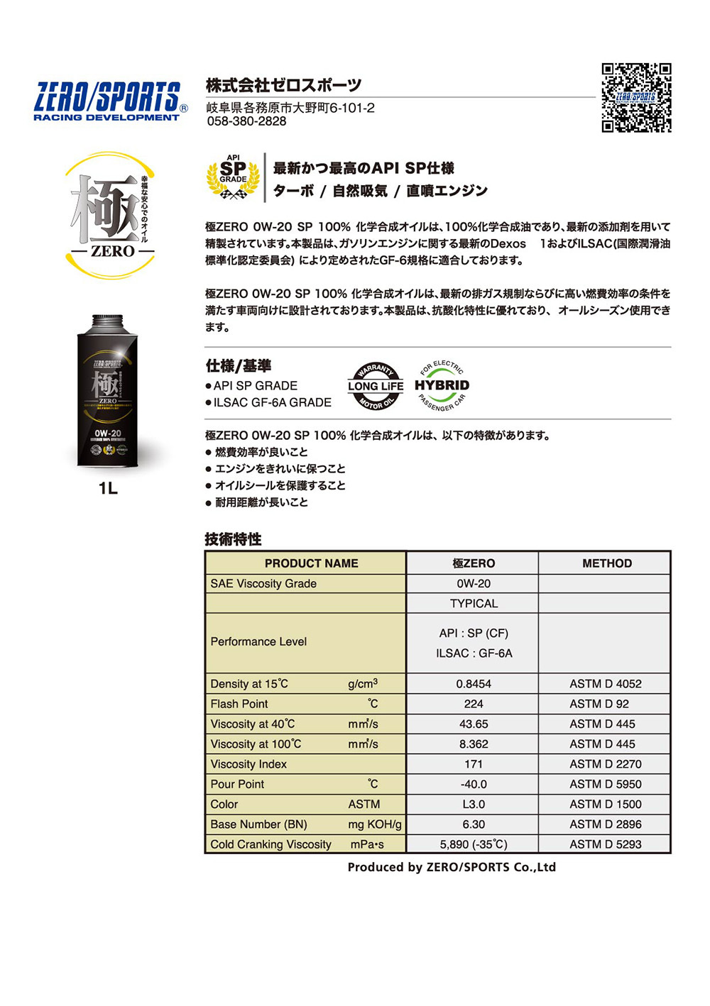 【日本ZERO/SPORTS】總代理-極系列0W20酯類合成機油