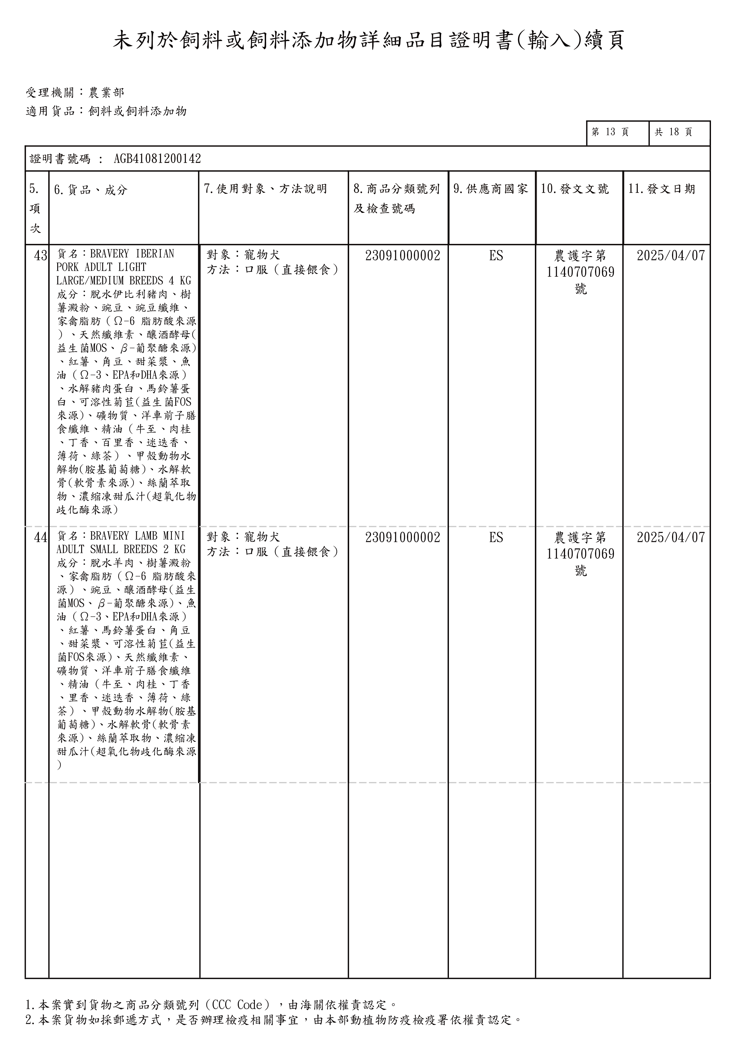 粗蛋白28%↑,粗脂肪11%↑,粗纖維8.5%↑,粗灰分7.9%↓,水分9%↓,鈣1.6%↑,磷0.95%↑,氨基葡萄糖鹽酸380 mg / kg↑,軟骨素 240 mg/kg以上,熱量 3200 kcal/kg