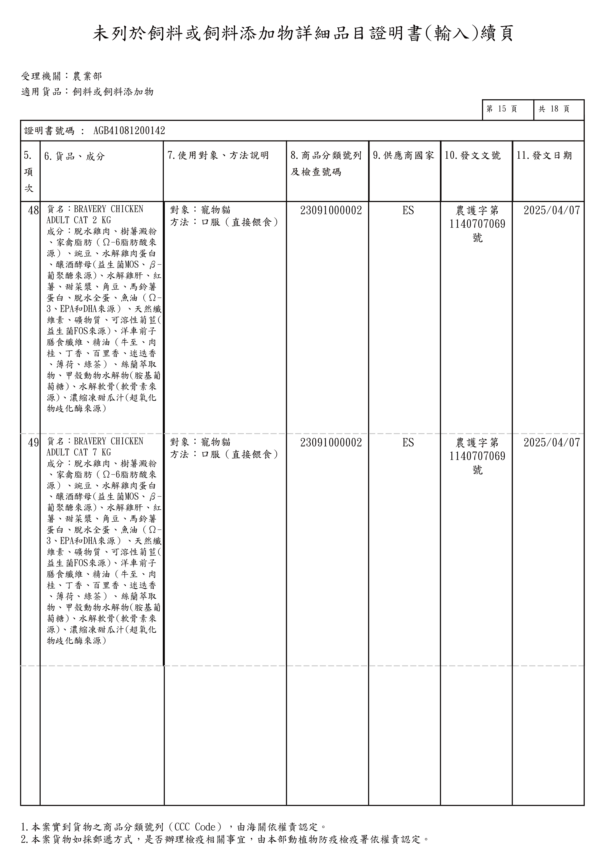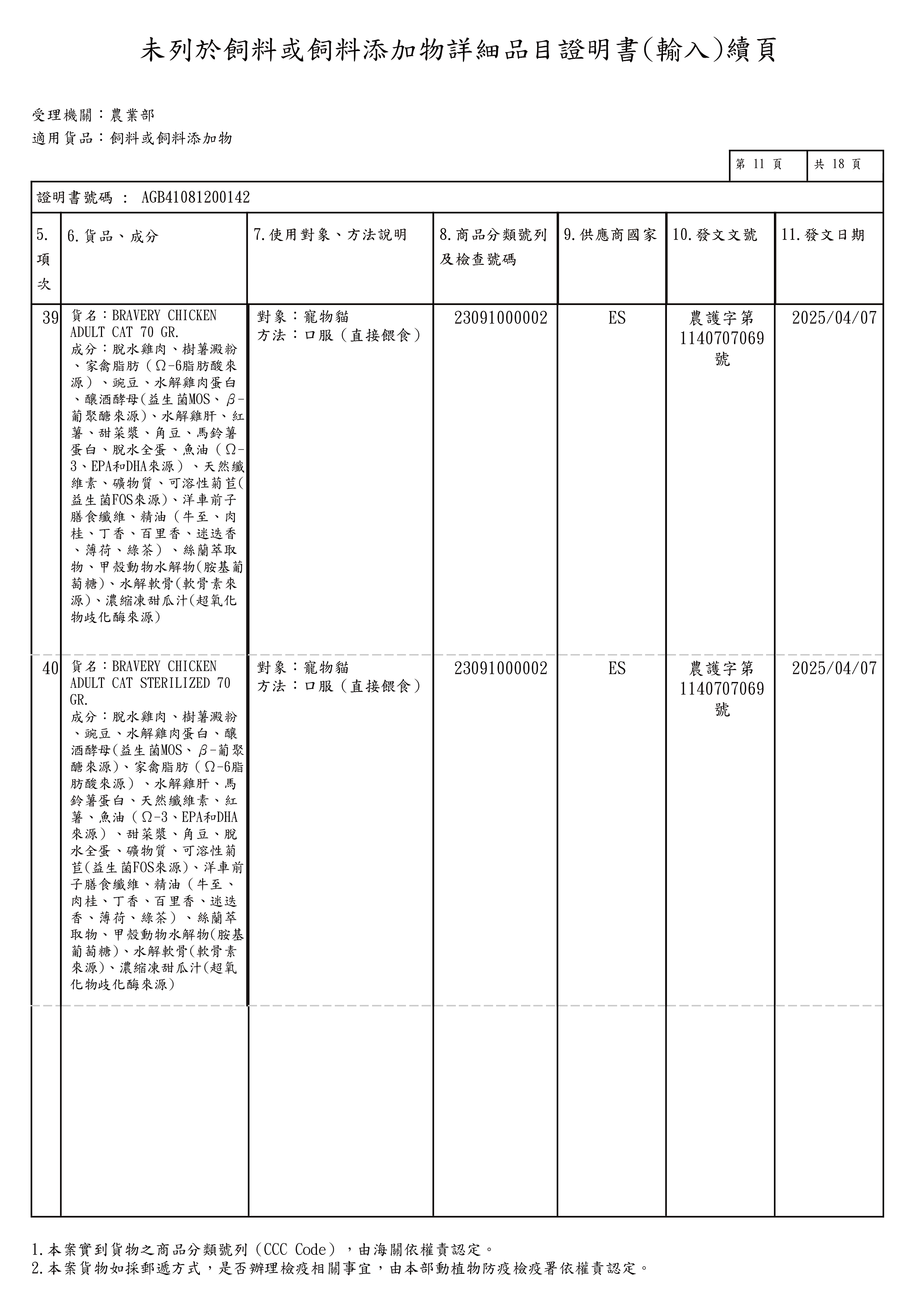 粗蛋白32%↑,粗脂肪16%↑,粗纖維3.7%↑,粗灰分8.2%↓,水分9%↓,鈣1.3%↑,磷1.10%↑,氨基葡萄糖鹽酸300 mg / kg↑,軟骨素 220 mg/kg以上,熱量 3795 kcal/kg