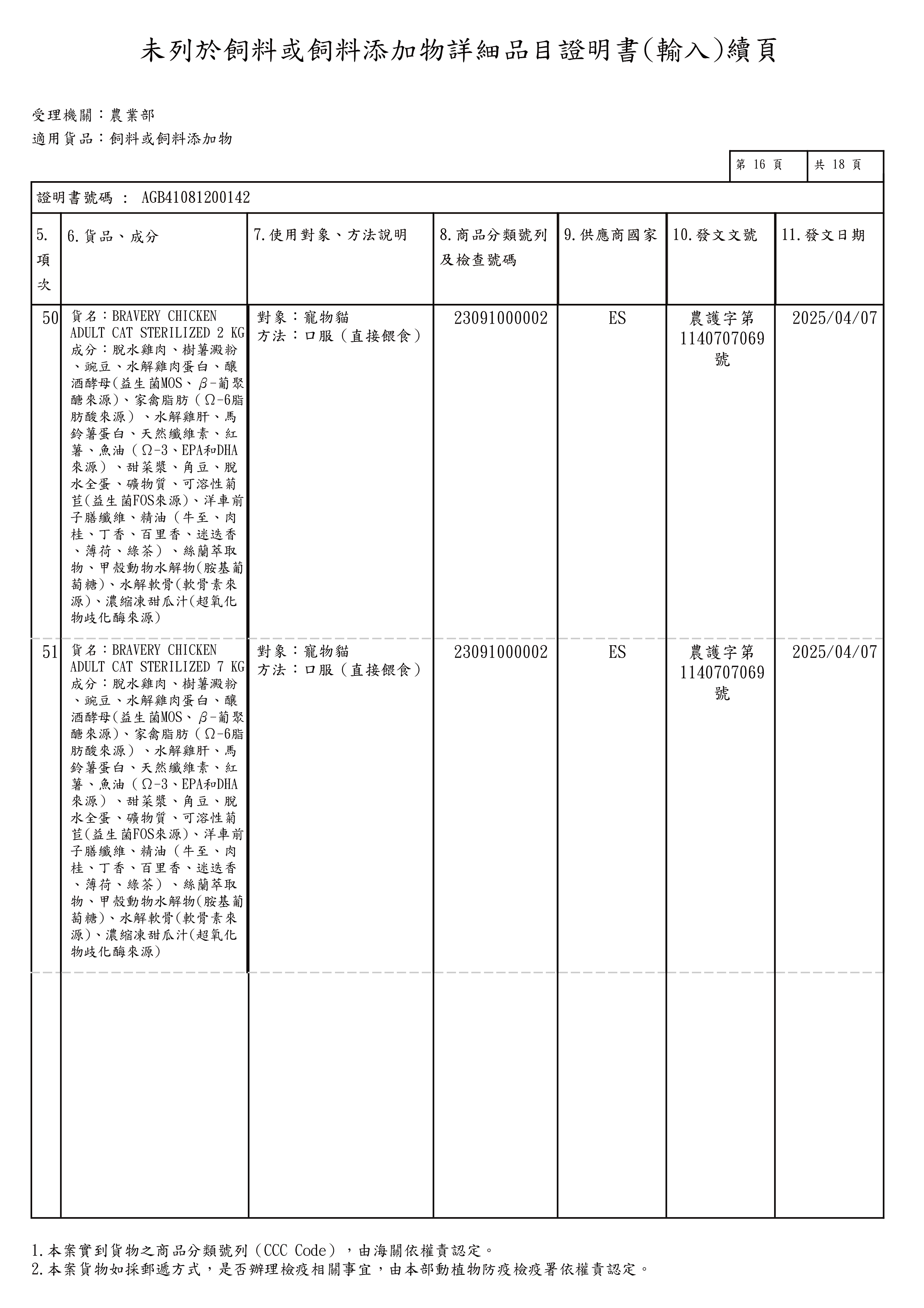 粗蛋白33%↑,粗脂肪12%↑,粗纖維5%↑,粗灰分7.9%↓,水分8%↓,鈣1.2%↑,磷1%↑,氨基葡萄糖鹽酸300 mg / kg↑,軟骨素 220 mg/kg以上,