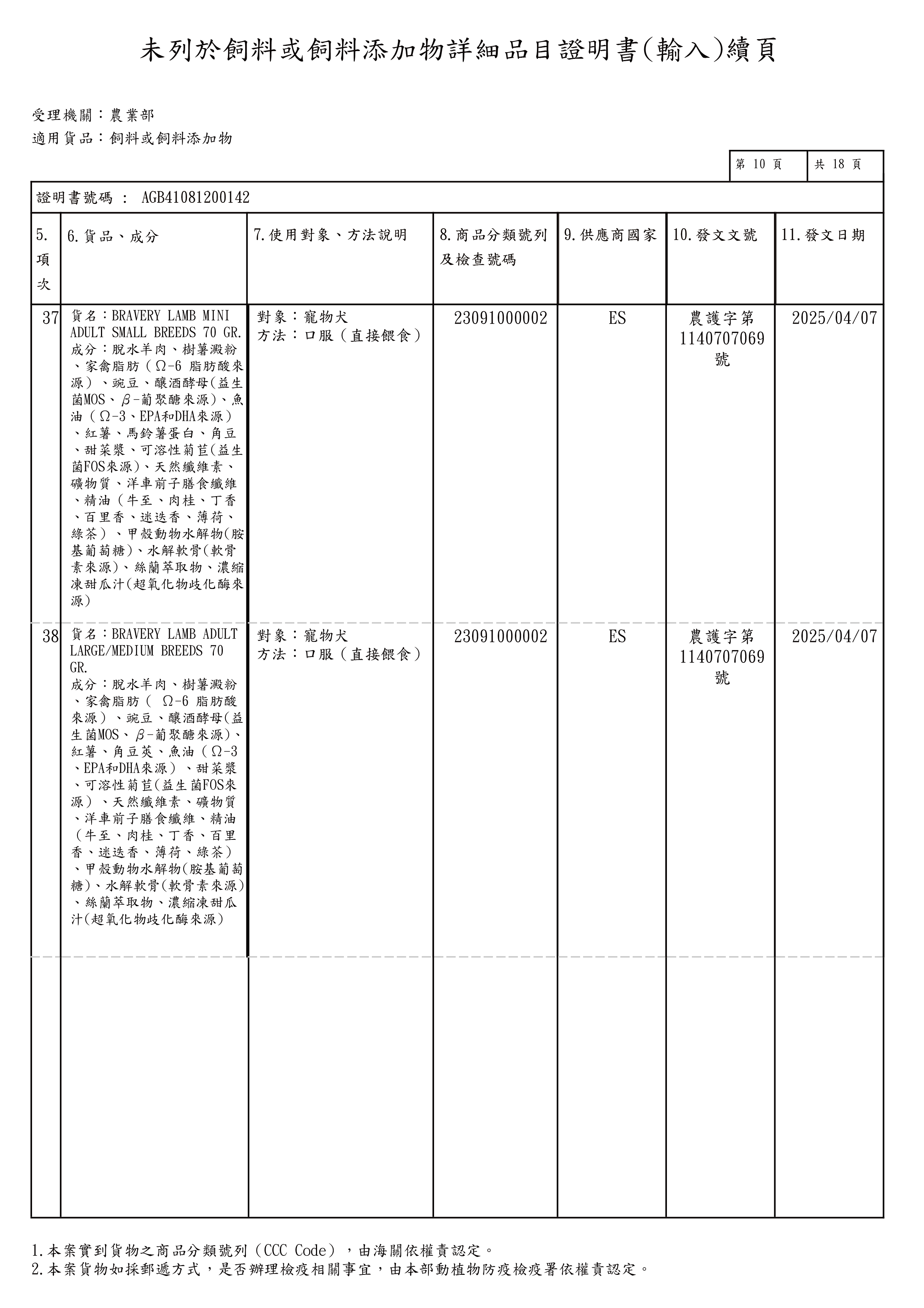 脫水羊肉、樹薯澱粉、家禽脂肪( Ω-6 脂肪酸來源)、豌豆、釀酒酵母(益生菌MOS、β-葡聚醣來源)、紅薯、角豆莢、魚油(Ω-3、EPA和DHA來源)、