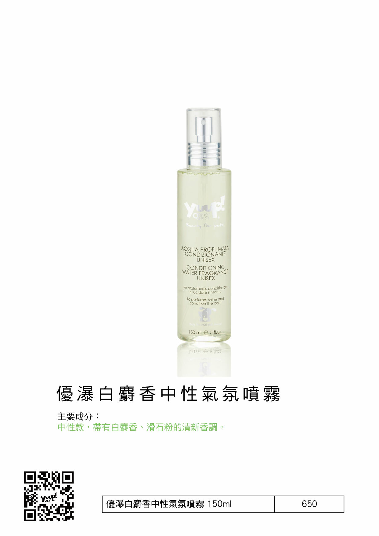 【義大利 Yuup】總代理-優瀑 白麝香中性氣氛噴霧 150ml 犬貓適用