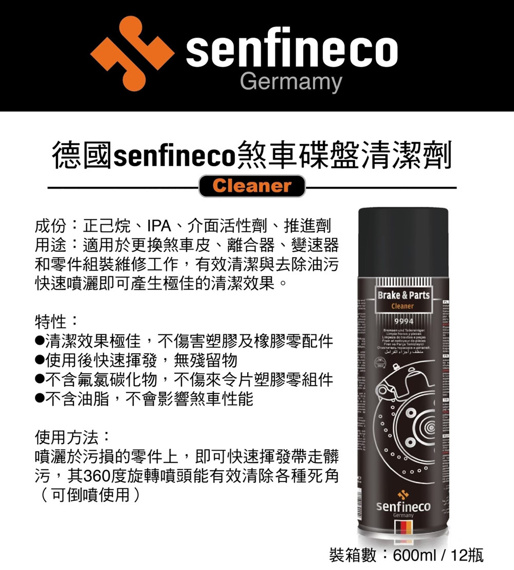 【 德國SENFINECO】煞車碟盤清潔劑9994